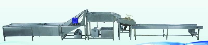 采用高壓汽泡水浴清洗,清洗能力大、洗凈率高且不損傷物料,物料經(jīng)輸送網(wǎng)帶輸送至噴淋段,噴淋清洗后至下道工序。